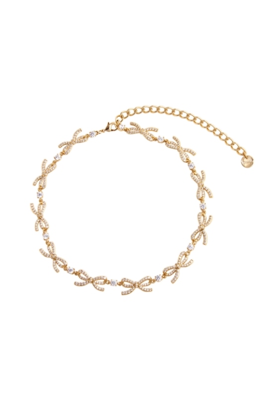 قلادة بحلية على شكل عجلة بشعار الماركة مرصعة بأحجار زركونيا مكعبة، نحاس مطلي بذهب